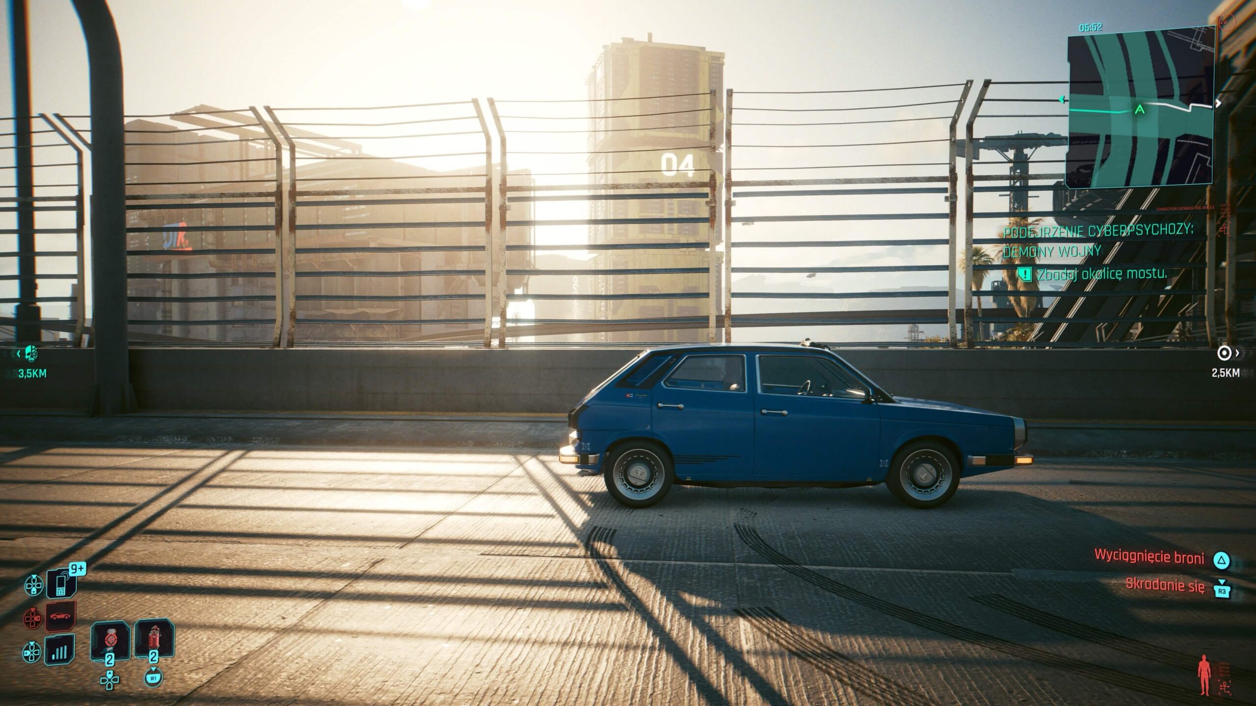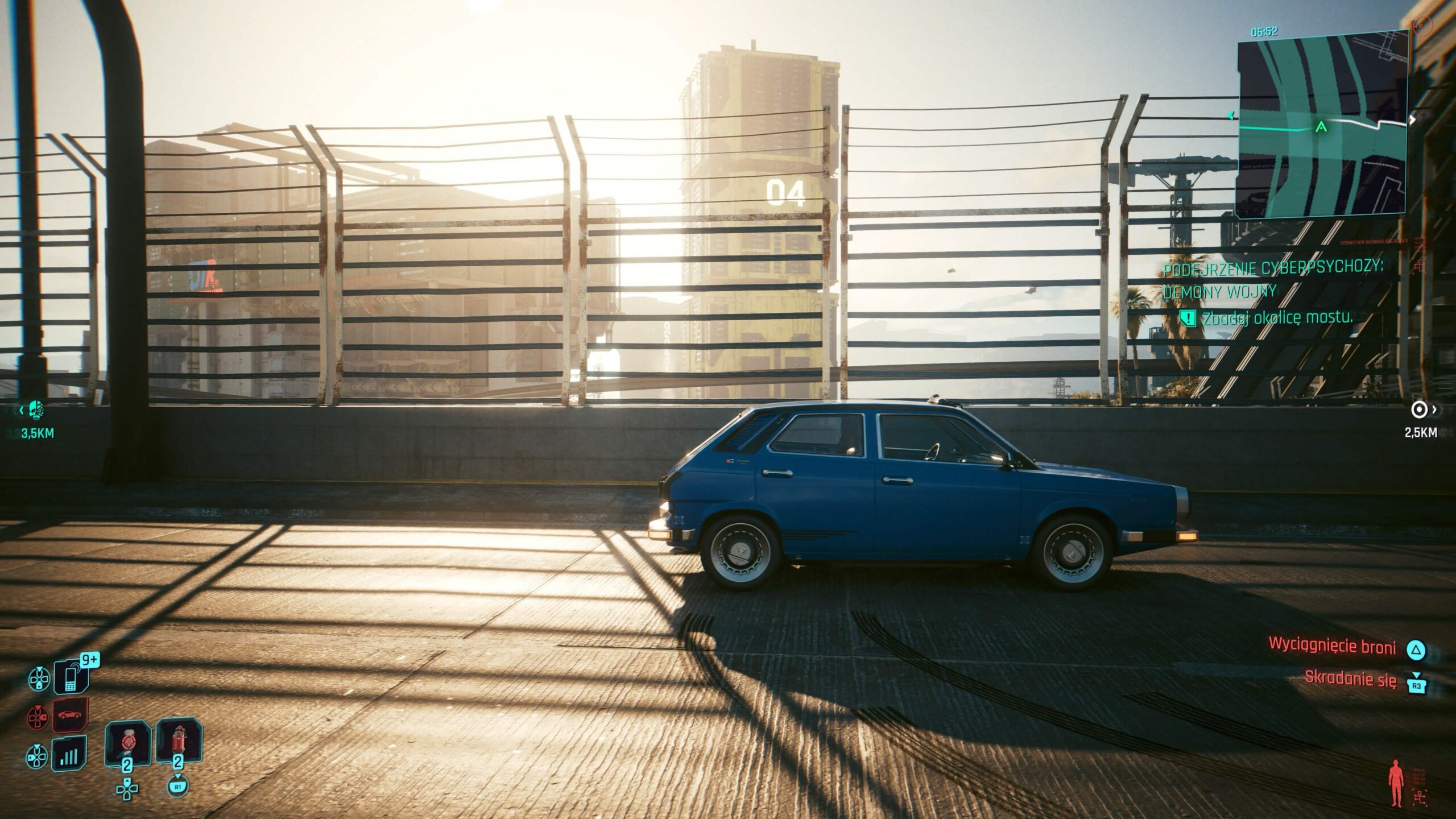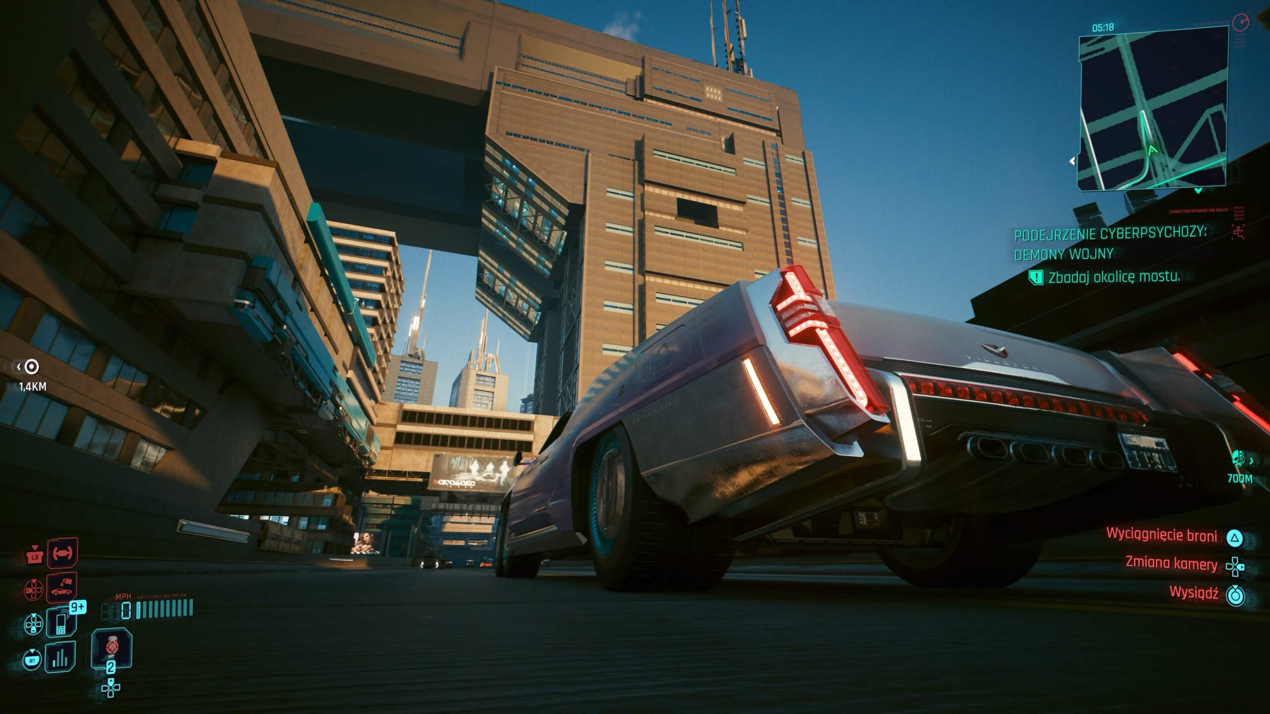 Tryb Ray Tracing jest znacznie ciekawszy. To w zasadzie odpowiednik trybu z bazowego PS5, ale działający w 60 fps-ach zamiast 30. Rozdzielczość spada wtedy do około 1440p, jednak w zamian mamy cienie wykorzystujące śledzenie promieni, widoczne nawet w oddali. Dodatkowo część powierzchni korzysta z odbić z ray tracingiem – głównie szyby i karoserie samochodów. Wydajność stoi tu na dobrym poziomie i licznik klatek rzadko pokazuje wartości poniżej 60. W mojej opinii to domyślny tryb dla PS5 Pro.