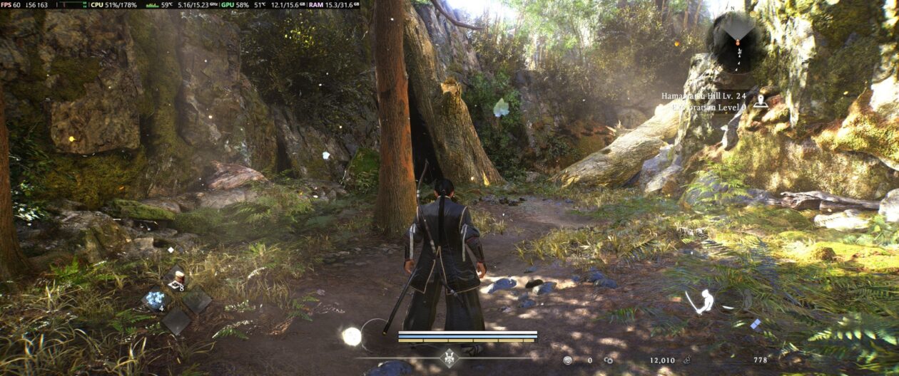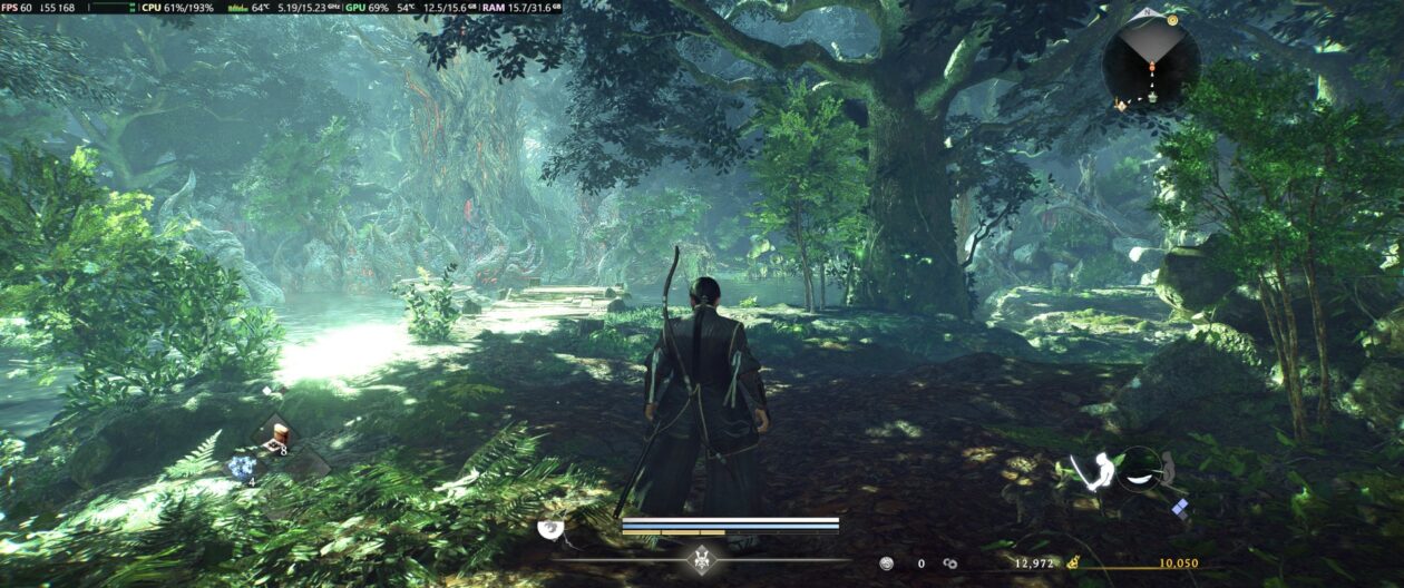 Podczas testów zauważyłem też, że gra bardzo mocno obciąża procesor. Nakładka wydajności Steama pokazywała użycie CPU na poziomie od 60 do 90% (a mówimy przecież o Ryzenie 7 9800X3D), podczas gdy wskaźniki z Xbox Game Bar sugerowały bardziej realistyczne wartości w okolicach 50-65%. Nie mam stuprocentowej pewności, który pomiar jest bliższy prawdy (choć podgląd w menedżerze zadań raczej potwierdza ten drugi) ale nawet te niższe liczby są już bardzo wysokie. W praktyce oznacza to, że na słabszych procesorach mogą pojawić się poważne problemy z wydajnością. Częściowym sposobem na ograniczenie obciążenia jest zablokowanie Nioha 3 do 60 klatek na sekundę, wtedy użycie CPU spada do około 40% według Steama i około 30% w Xbox Game Bar.