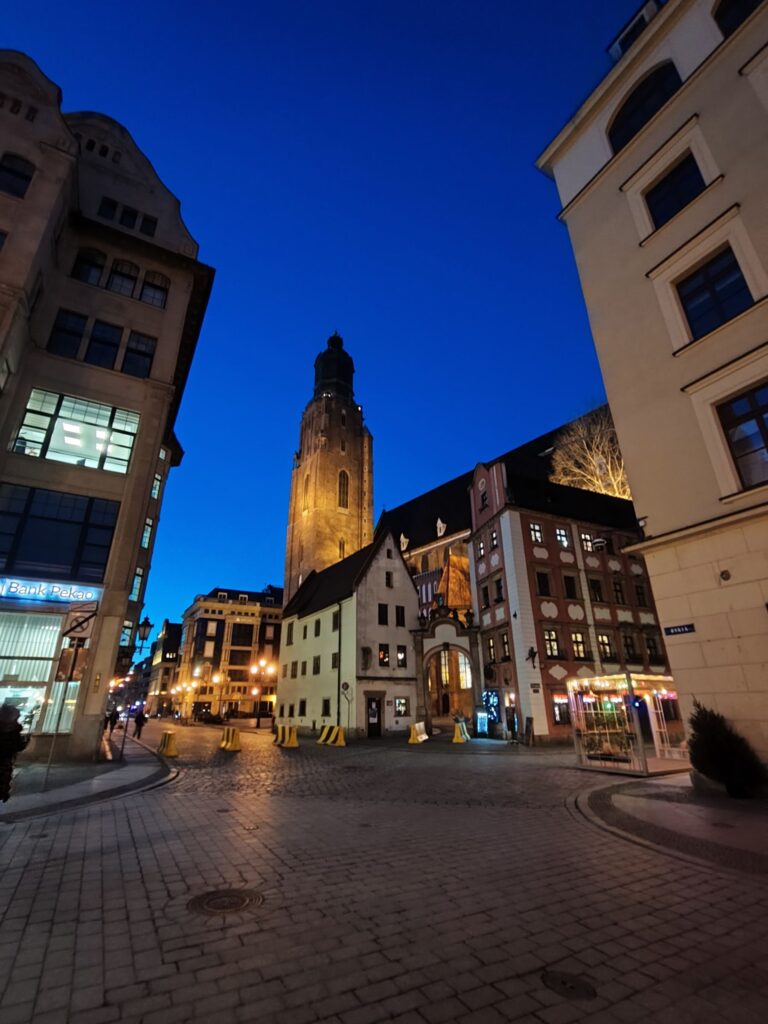 Drugą stroną medalu jest jednak słaby, typowy już dla telefonów za tysiaka obiektyw ultraszerokokątny o rozdzielczości 8 Mpix. Traktujcie go jako uzupełnienie możliwości głównego „słoiczka” za dnia: ani tu nie ma bogactwa detali, ani – gdy światła mniej – cieszącej oko ostrości. Przydaje się w zasadzie tylko do „dużej” architektury. Opcji makra próżno zaś w sofcie telefonu szukać, nawiasem mówiąc.