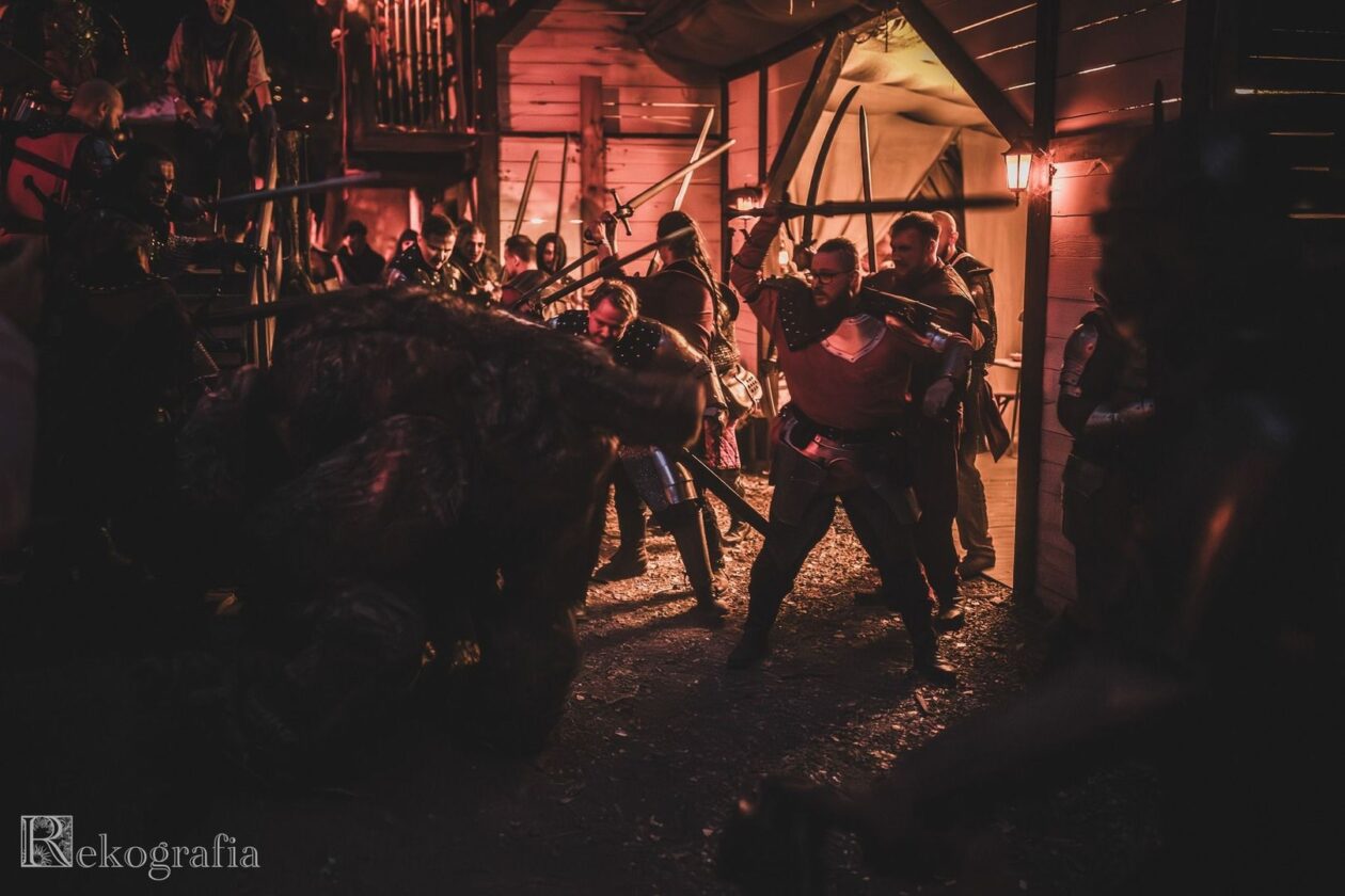 Za kolonię służyły tereny Rancza Western w Czyżowicach, gdzie na graczy czekały drewniana wioska (Stary Obóz), malowniczy las, w który wciśnięto dwie lokacje (przyczółki Nowego Obozu oraz Bractwa Śniącego), a na wzgórzu ze starą kopalnią slumsy zamieszkane przez kopaczy. Oprócz tego na szlaku mogliśmy natknąć się na kilka niespodzianek i dodatkową miejscówkę czy dwie. Całość wystarczyła, by bardzo sprawnie symulować przestrzeń odciętej krainy. Wkraczając na niemal trzy dni w tę przestrzeń (z przerwami na sen i kwestie higieniczne), poczułem się jak faktyczny skazaniec ze świata fantasy.