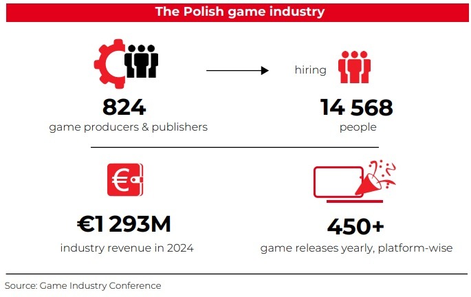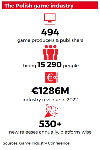 Jak dowiadujemy się z opublikowanego w grudniu raportu PARP, The Game Industry of Poland, w kraju działa 824 producentów i wydawców, zatrudniających 14,6 tys. ludzi. Branża generuje przychód rzędu 5,5 mld zł i wypuszcza na rynek ponad 450 gier rocznie.