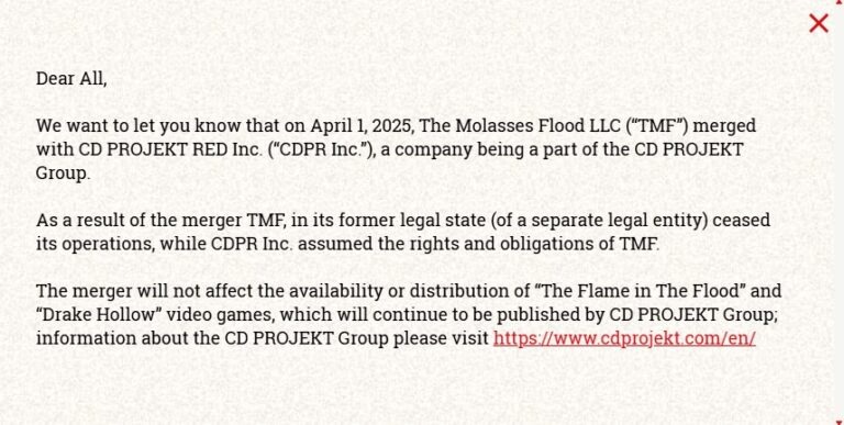 CD Projekt rozpoczął 2025 rok od wypłaty dywidendy (w wysokości 25% rocznych przychodów netto) i wchłonięcia przejętego kilka lat wcześniej amerykańskiego studia The Molasses Flood (mającego przygotowywać multiplayerowy spin-off Wiedźmina).