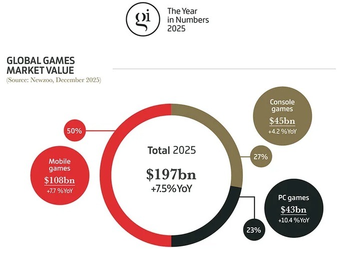 Mimo to na papierze gamedev radzi sobie nieźle: zdaniem analityków agencji Newzoo branża gier jest warta 200 mld dolarów (wzrost o 7,5 punktu procentowego rok do roku). To więcej niż przemysł muzyczny i produkcja filmowa razem wzięte!