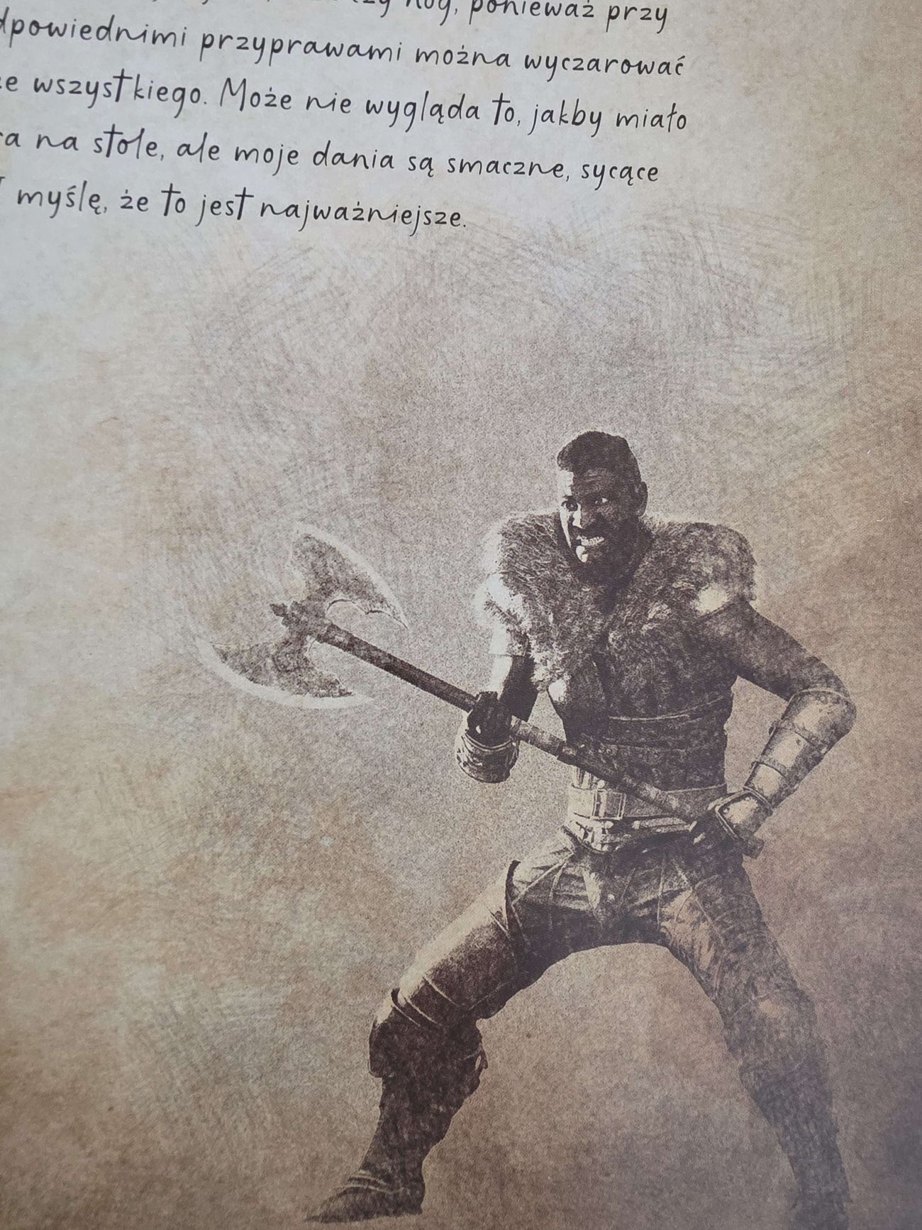 Za dzieło odpowiada Tom Grimm, pracujący wcześniej nad książkami kucharskimi z uniwersów Harry’ego Pottera czy Władcy Pierścieni, choć trzeba dodać, że te w tytułach mają dopisek „nieoficjalne”. Ów dżentelmen zetknął się w przeszłości z samymi grami Piranha Bytes, przygotowywał bowiem oficjalny poradnik do Risena i, podobnie jak nasz redakcyjny kolega b-side, do Risena 2: Mrocznych wód. Fotografie potraw wykonał z kolei Dimitrie Harder.