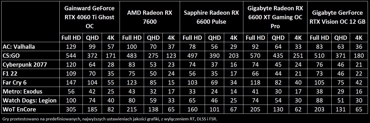 5 odpowiedzi do “Gainward GeForce RTX 4060 Ti Ghost OC – test. Za mało, za drogo”