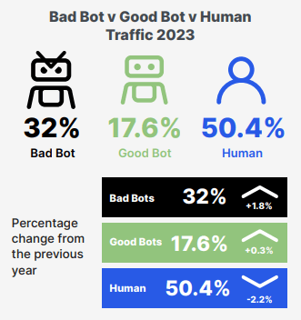W ramach badania przeprowadzonego w ubiegłym roku przez zajmującą się cyberbezpieczeństwem firmę Imperva przeanalizowano internet pod kątem obecności botów. Uzyskane wyniki okazały się niezbyt optymistyczne, wedle nich niemal połowa, bo 49,6%, ruchu w sieci stanowi efekt działań nie ludzi, lecz właśnie botów. To najwyższa liczba w historii tego badania, a w przypadku poszczególnych państw prezentuje się jeszcze okazalej. Dla przykładu, Imperva wykazała, że ruch internetowy w Irlandii jest zautomatyzowany aż w 71%.