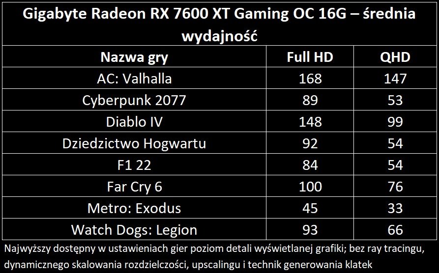 Gigabyte Radeon RX 7600 XT Gaming OC 16G – wyśmienity również do QHD
