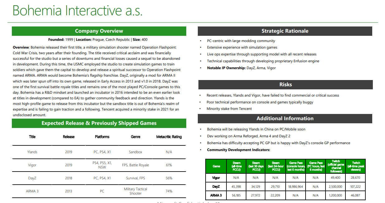 Przeczytamy w nim krótką historię firmy, jej strategię, poznamy liczbę graczy Army oraz DayZ w poszczególnych okresach i zupełnie przypadkiem zobaczymy, że developerzy mają teraz w przygotowaniu 3 gry – powstaje Arma 4, Arma Reforger (dostępna we wczesnym dostępie na Steamie i zbierająca mieszane recenzje), a także DayZ 2.