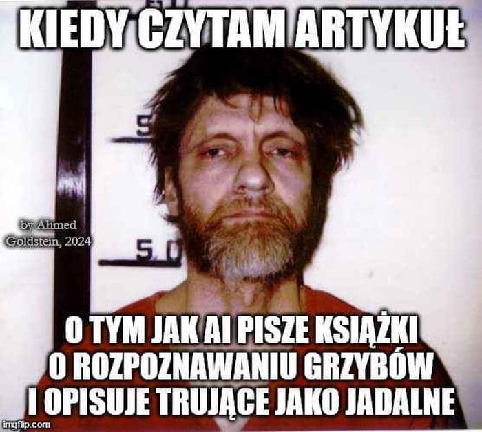 Ps. Czytanie artykułów o książkach o grzybach pisanych przez AI, która trujące grzyby opisuje jako jadalne sprawiło, że autor mema został terrorystą? Nie rozumiem.