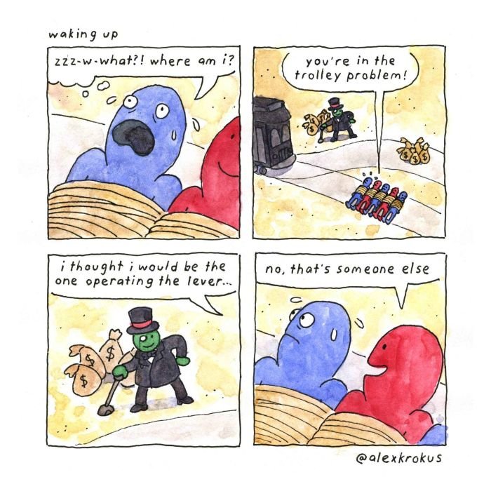 Pewnie moja wina, ale memy typu „ja, kiedy (jakieś wydarzenie)” ze zdjęciami czyichś twarzy w większości przypadków są dla mnie kompletnie niezrozumiałe, szczególnie kiedy memowe lica nie są naznaczone jakimiś wyrazistymi emocjami. Obecny na zdjęciu Kaczynski nie jest zły, smutny, wesoły, zniesmaczony, poza jakimś trudnym do opisania, MonaLizowskim grymasem ma kompletnie neutralny wyraz twarzy – on po prostu tak wyglądał, taką miał japę. W poszukiwaniu sensu kieruję myśli w stronę kontekstu zdjęcia, że mugshot, terrorysta, bomby, anarchia, walka z systemem, ale to chyba ślepa uliczka. Koniec.