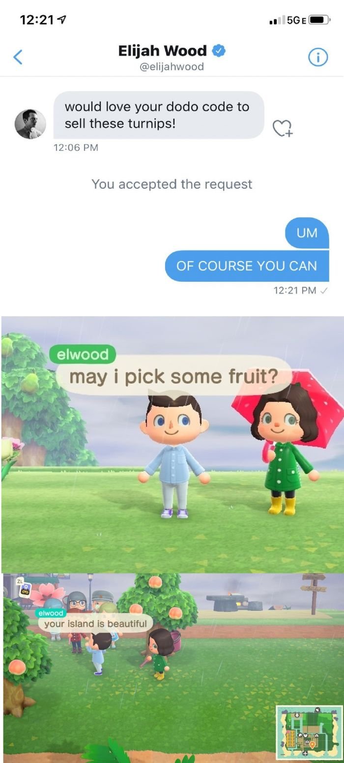 Albo kiedy Elijah Wood odwiedzał fanów w Animal Crossing w trakcie pandemii. (Byłby lepszym Stevem, choć to inna gra, inna marka i inna moralność).