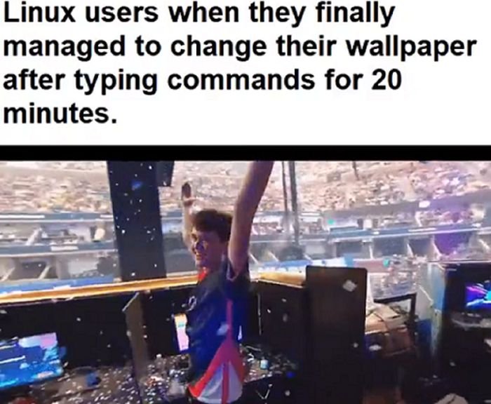 Używam Ubuntu gdzieś tak od 16 lat. Sposób na zmienianie tapety nigdy nie różnił się bardzo od tego, co się robiło w Windowsie… A umówmy się, nawet jeśli mówimy o szybkim stosowaniu komend, to ten argument działa tylko jeśli masz pojęcie o komendach, ewentualnie masz poradnik (bądź wiesz jak znaleźć jakiś manual).