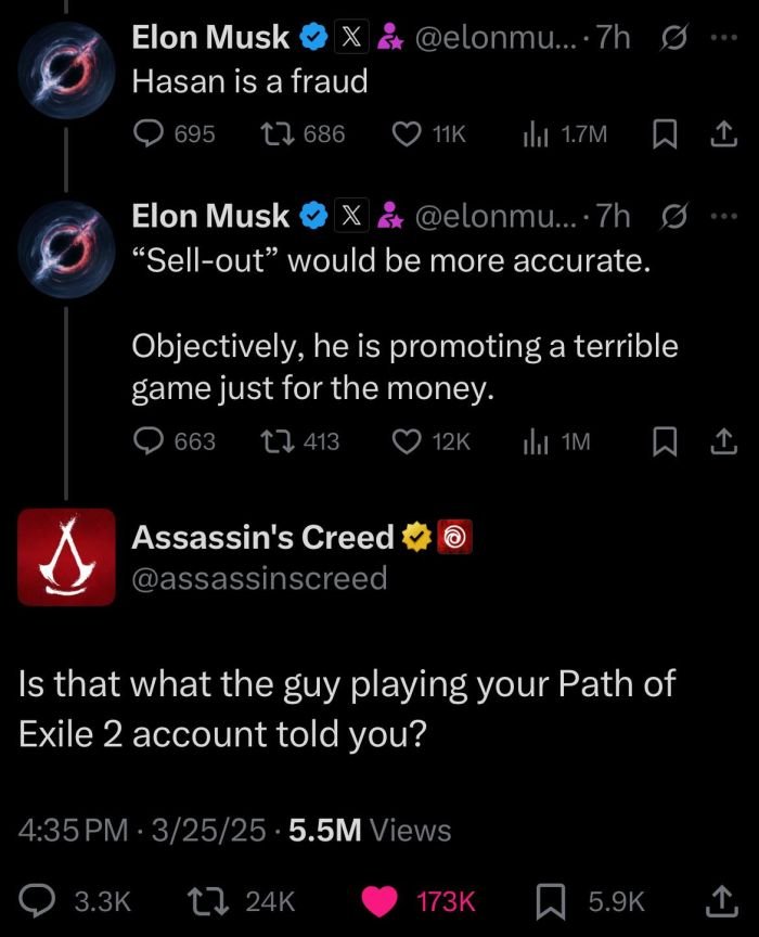 Ubisoft płaci Muskowi 1000$ miesięcznie za złotego „ptaszka” na profilu.