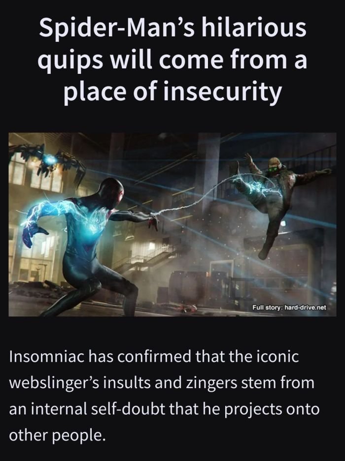 Strona 5, to nie Insomniac potwierdziło, tylko Stan Lee w wywiadzie lata temu… chyba, że na tym miał żart polegać?