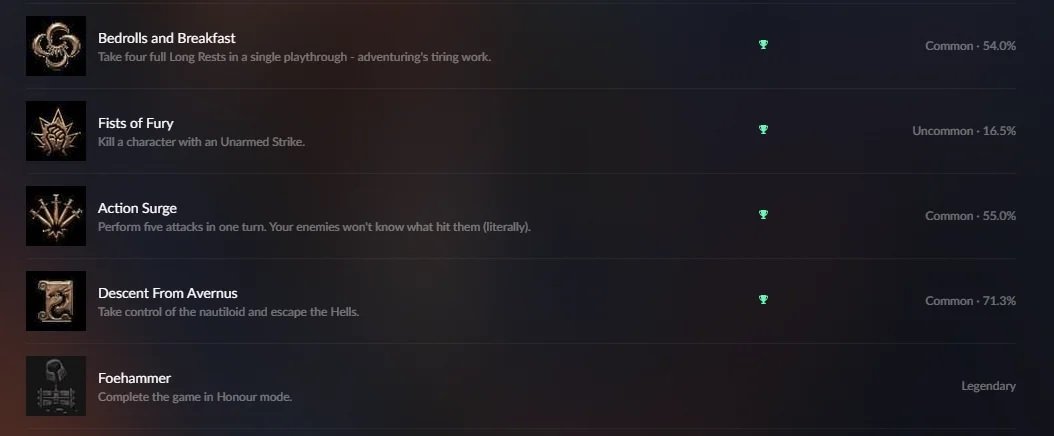 Jeżeli ukończyłeś/aś Baldur’s Gate 3 w stu procentach, grając poprzez GOG-a, mogłeś/aś już teraz zauważyć, że twój procent zdobytych osiągnięć się zmniejszył. Spostrzegł to między innymi użytkownik Reddita o nazwie Scornz. Przeglądał on wspomniane osiągnięcia na GOG-u i spostrzegł, że pojawiło się nowe, nazwane Foehammer. Z jego opisu wynika, że aby je zdobyć, trzeba ukończyć grę w trybie Honour Mode.