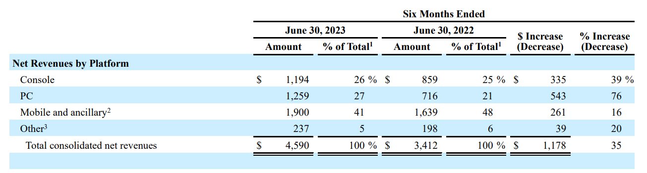 Skoro gracze tak chętnie sięgają po produkcje przeznaczone na platformy mobilne, nietrudno się domyślić, że to właśnie tutaj spółka odnotowuje największy zysk – od początku roku do końca czerwca było to 1,9 miliarda dolarów. Ciekawie wygląda drugie miejsce, które nie należy wcale do konsol, a do pecetów – tutaj w ostatnim półroczu Activision Blizzard zarobiło 1,25 miliarda dolarów, natomiast na konsolach 1,19 miliarda.