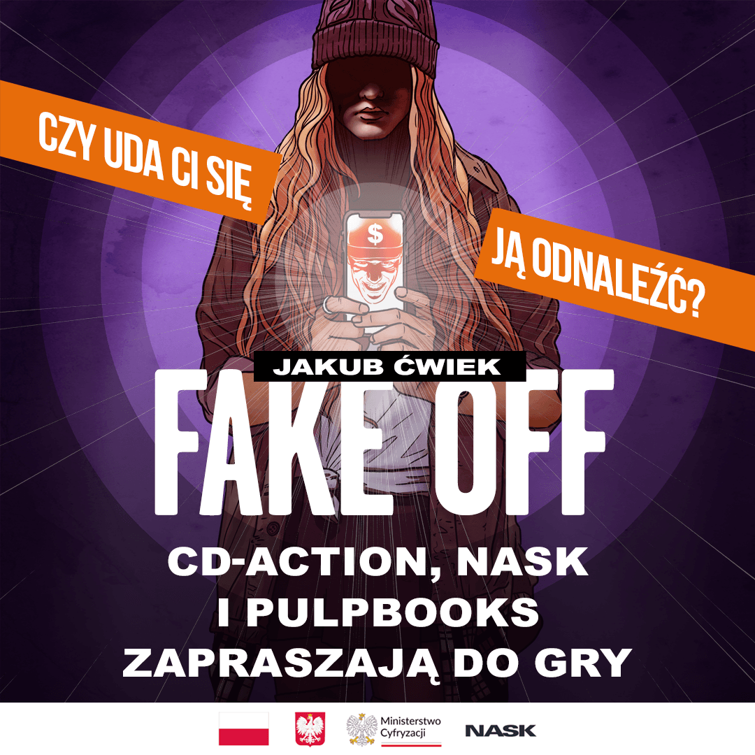 I właśnie tę problematykę ma naświetlić gra paragrafowa Fake Off. Aby zawarta w niej historia była jak najlepsza, zaprosiliśmy do współpracy wydawnictwo Pulp Books – to samo, które przygotowuje audiobook CD-Action i które stworzyło grę terenową na CD-Action Expo 2023. Za scenariusz odpowiada sam Jakub Ćwiek, autor m.in. wielu powieści fantasy, a projekt nadzorował Andrzej Kwiecień, którego  debiutancka cyberpunkowa powieść „Metamorf” ukazała się w tym roku i którą recenzowaliśmy dla w CD-Action.