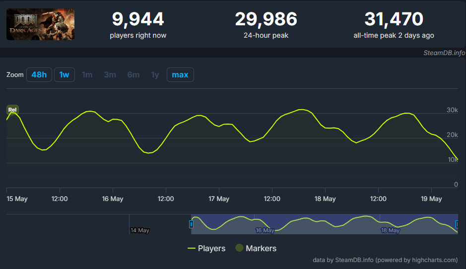 Szczyt popularności tytułu wyniósł dokładnie 31 470 graczy bawiących się jednocześnie. Doom z 2016 osiągnął ich 44 tysiące, a Doom Eternal – ponad 100 tysięcy. W porównaniu z poprzednią grą z serii możemy więc mówić o ogromnym spadku. Dlaczego? Przyczyn jest jak zwykle kilka i każdy komentujący zwraca uwagę na co innego.