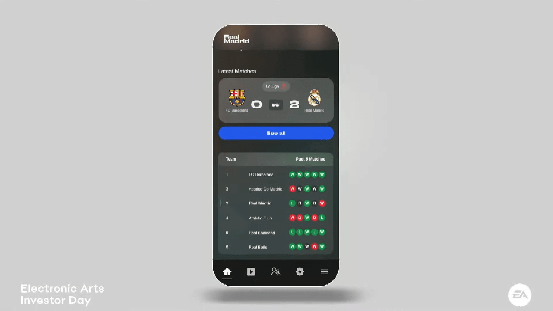Dział sportowy „Elektroników” otrzyma spore wzmocnienie. Podczas konferencji inwestorów zapowiedziano nową aplikację, która testowo zostanie uruchomiona na Androida oraz iOS-y w Hiszpanii. W założeniach twórców wygląda to jak platforma społecznościowa kręcąca się wokół gier EA Sports oraz wydarzeń na realnych arenach sportowych. Oprócz zarządzania swoimi działaniami w grach będzie również opcja czatowania z innymi graczami, seria wyzwań, newsletter przedstawiający zmiany w produkcjach, a także obszerna zakładka zawierająca najświeższe informacje ze świata sportu, relacje ze spotkań oraz zaawansowane statystyki.