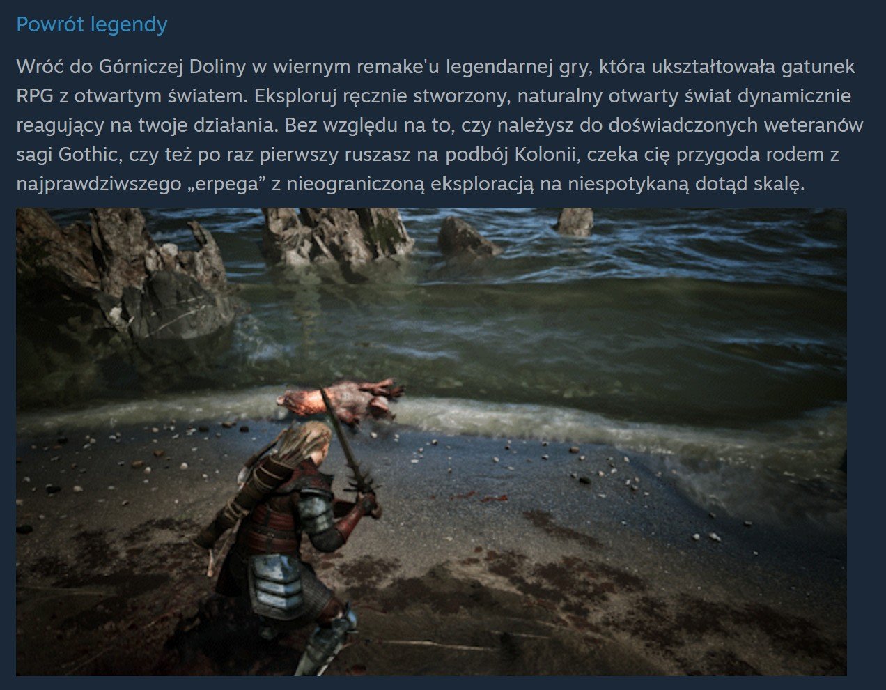 Gothic Remake z odświeżoną stroną na Steamie. Teraz dostarcza więcej szczegółów