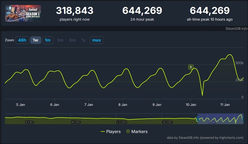 Jeśli ktoś sądził, że Marvel Rivals będzie tylko chwilowym hitem, który umrze tak szybko, jak się zjawił, to srogo się pomylił. Gra NetEase Games nie tylko utrzymuje bardzo dużą liczbę dziennie grających osób, ale ciągle powiększa liczbę zainteresowanych produkcją graczy. Już poprzedni rekord gry, czyli prawie pół miliona grających jednocześnie, robił duże wrażenie, a wygląda na to, że był to dopiero początek. Teraz Marvel Rivals może pochwalić się dużo wyższymi liczbami. Rekord gry pod względem jednocześnie grających w nią osób podskoczył z 445 tys. do aż 644 tys.