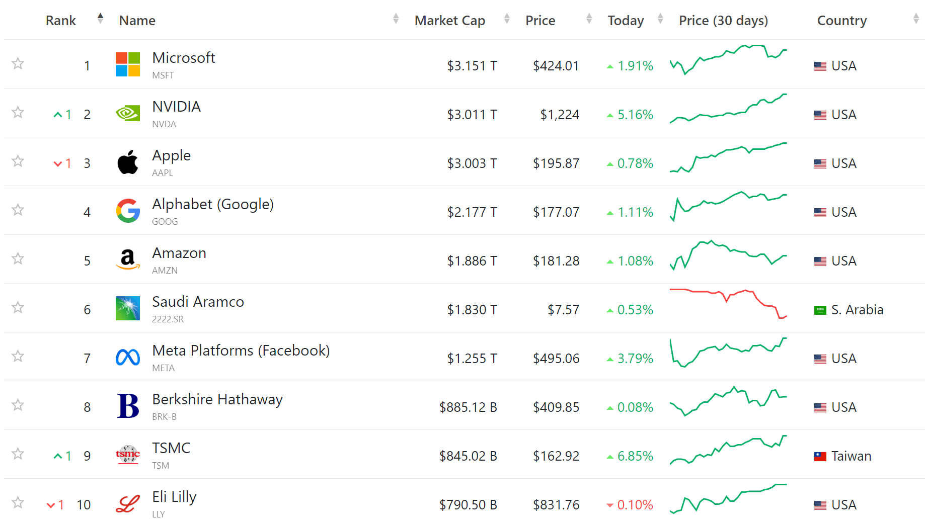 Pierwsze miejsce na podium wciąż należy do Microsoftu, aczkolwiek różnica między nim a Nvidią maleje z dnia na dzień. Korporacja z Santa Clara jest obecnie wyceniana na 3,011 biliona dolarów, a za jedną jej akcję należy wysupłać aż 1224 dolary, czyli około 4839 złotych. Te jednak już wkrótce, bo 7 czerwca, podzielone zostaną na dziesięć części, co ma zachęcić do kupna mniejszych inwestorów niedysponujących dużym kapitałem.