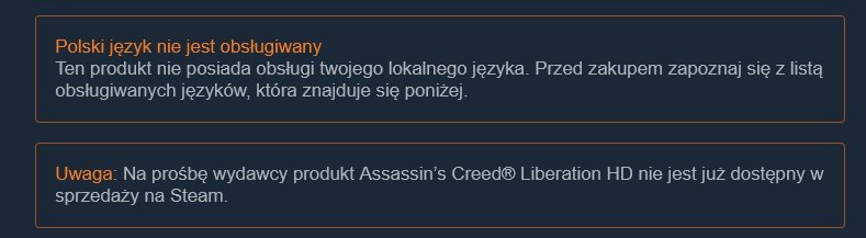 W przypadku obu produkcji oprócz wyłączenia funkcji online niemożliwa będzie również instalacja i dostęp do DLC. Od tego czasu AC Liberation HD i Silent Hunter 5 zostały wycofane ze sprzedaży na Steamie, a na stronie pojawił się następujący komunikat: