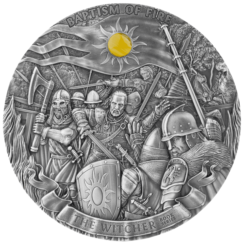 Wyjątkowym dodatkiem na monecie jest wysoki, 3,5-milimetrowy relief, czyli płaskorzeźba, która nadaje jej głębi. Wizerunki monet zostały stworzone przez cenionych w świecie numizmatycznym projektantów i modelarzy, a konsultowane były przez Andrzeja Sapkowskiego. Cała seria monet ułoży się w historię odpowiadającą Sadze Wiedźmina.