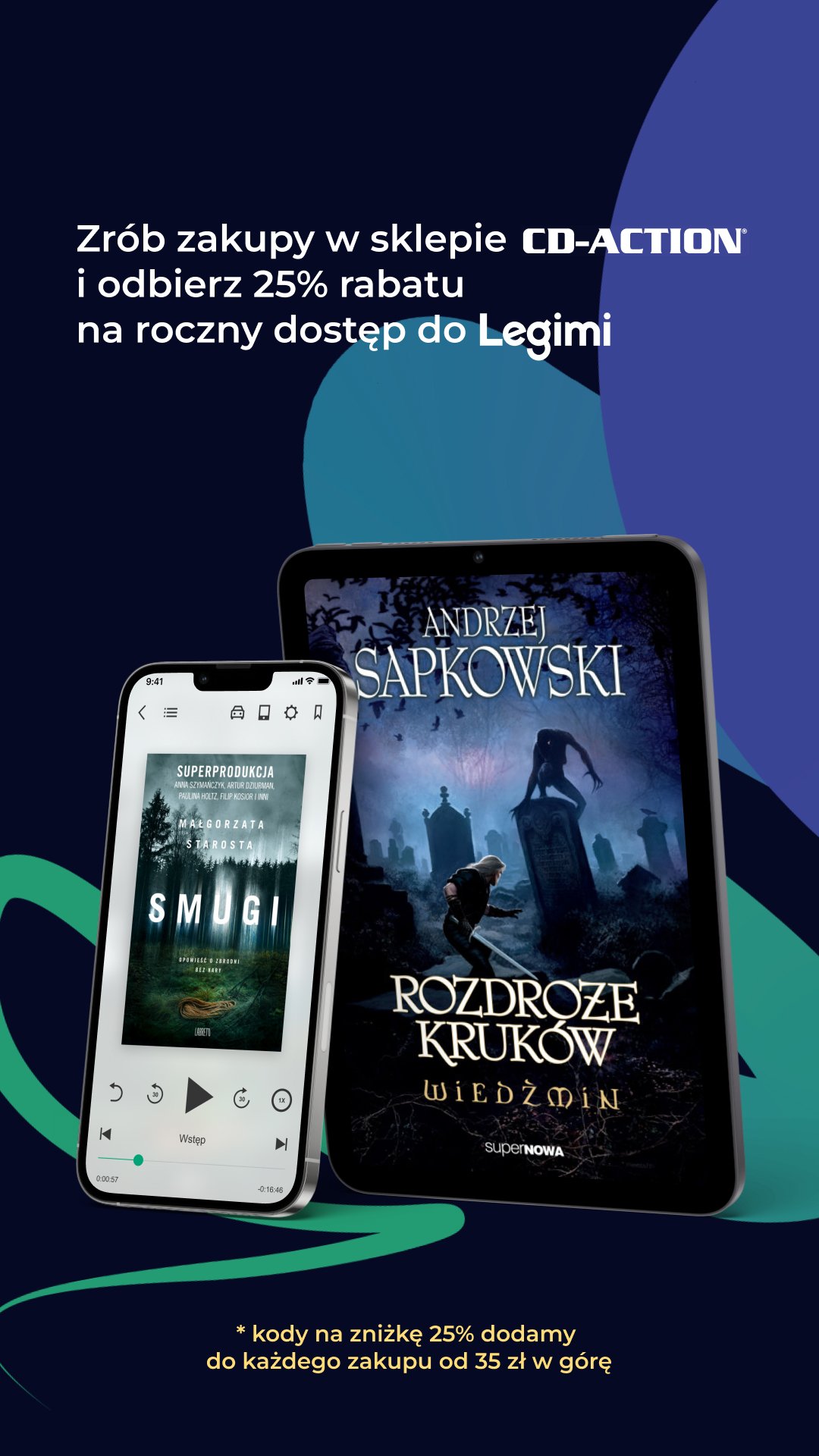 Ruszyła nowa promocja w sklepie CD-Action. Do każdego zakupu od 35 zł dodajemy kod uprawniający do 25% rabatu na roczny dostęp do Legimi. Wystarczy więc nabyć jeden z regularnych numerów CD-Action, chociaż zachęcamy do uzupełnienia swojego zamówienia o nasze wydania specjalne, CD-Action Retro czy książki z cyklu „Gry, które trzeba znać”.