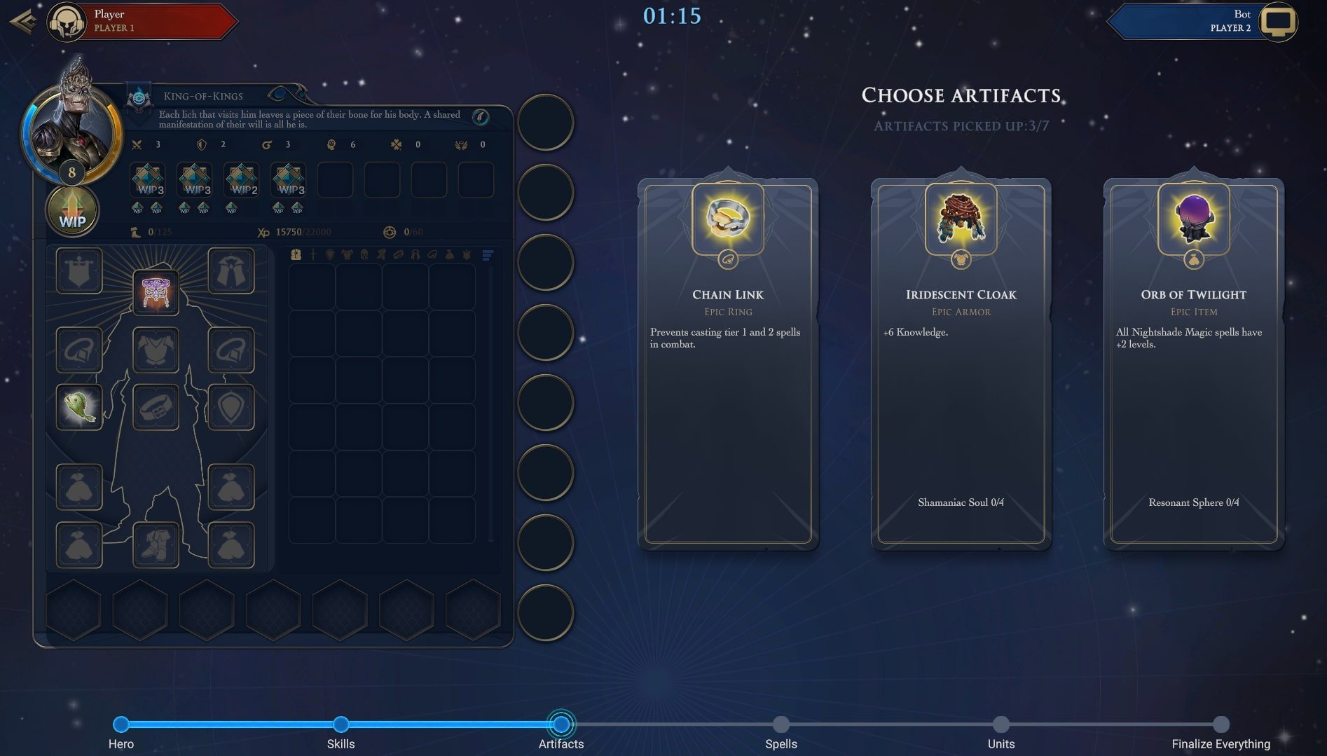 Artefakty pozostają oczywiście jednym z kluczowych sposobów wzmacniania bohaterów. W Heroes of Might and Magic: Olden Era magiczne przedmioty doczekają się jednak pewnych zmian. Poprzednie części przyzwyczaiły nas do łączenia paru mniejszych artefaktów w jeden potężny, zapewniający bonusy. W Olden Era zamiast tego wprowadzony zostanie system zestawów, porównywany przez twórców m.in. do Diablo. Jeżeli nosimy kilka powiązanych ze sobą artefaktów, otrzymujemy konkretnego buffa, który będzie tym większy, im pełniejszy posiadany przez nas zestaw.