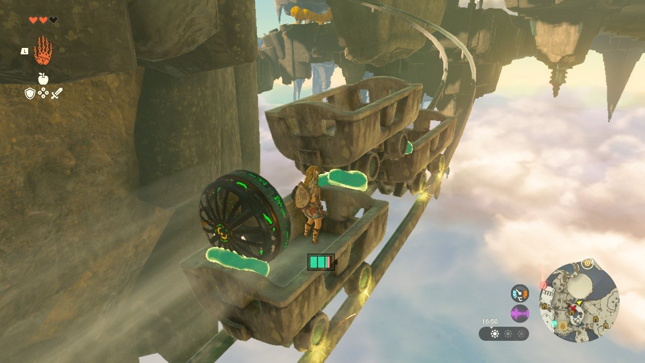 Umiejętność ta, jakkolwiek pozwalająca klecić naprawdę niezwykłe rzeczy, w wizji Nintendo miała służyć bardziej potrzebie chwili, nawet jeżeli na dalszym etapie możemy odblokować Autobuilda, który pozwala zapamiętać ulubione konstrukcje i przywoływać je niejako z powietrza. Nie zmienia to jednak faktu, że porzucone twory są bardzo szybko wymazywane z pamięci konsoli, toteż nie opłaca się rozbudzać kreatywności na zbyt wczesnym etapie zabawy. Jakież było moje rozczarowanie, gdy chwilę po lądowaniu w Hyrule poświęciłem około pół godziny na sklejenie czegoś na wzór czołgu, a kiedy tylko prześladowany przez grupkę moblinów odbiegłem na kilka metrów, mój wynalazek po prostu zniknął. Nawet nie zdążył człowiek screena zrobić. Gra potraktowała mój wehikuł jak byle kładkę, która chwilę po tym, jak przeszliśmy nad przepaścią, nie jest nam już do niczego potrzebna.