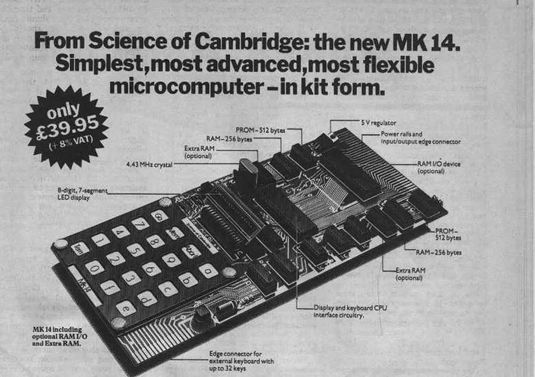 W lutym 1978 roku Clive Sinclair (a raczej jego firma Science of Cambridge) rozpoczął sprzedaż swego pierwszego komputera, znanego jako MK-14. Prace nad sprzętem, a miał to być zaawansowany, programowalny kalkulator, ruszyły gdzieś w połowie 1976 (pierwotna nazwa – Mark 14 – oznaczała po prostu 14. model kalkulatora w ofercie producenta). Na którymś etapie urządzenie przerodziło się jednak w bardzo prymitywny komputer. Bazujący na ośmiobitowym i taktowanym zegarem 4 MHz procesorze National Semiconductor SC/MP (INS8060), miał 0,25 kB RAM-u (z możliwością rozbudowy do… 0,64 kB) i sprzedawany był w formie zestawów do samodzielnego montażu, w cenie 39,95 funtów za egzemplarz.