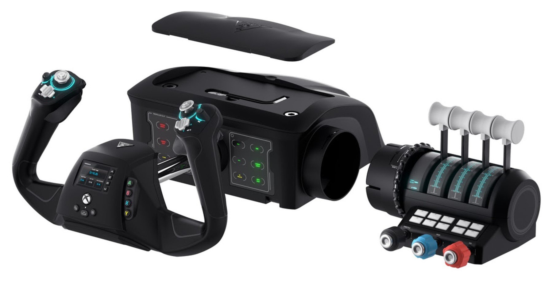 Z wolantem spędziłem ponad tydzień, koncentrując się – jak to ja – raczej na lataniu „po meblach”, a więc turystycznym i dla czystego funu, głównie z wykorzystaniem mniejszych maszyn. W porównaniu do najczęściej używanego przeze mnie Logitecha G X-56 wrażenia są lepsze. Co tu dużo mówić: przesiadłbym się bez zastanowienia, choć oczywiście wymieniona konkurencja, sprzedawana wcześniej pod marką Saiteka, jest tak czy inaczej bardzo dobrym kontrolerem i do czerpania przyjemności z gry jak najbardziej wystarcza. W VelocityOne Flight na początku brakowało mi jedynie orczyka – szybko jednak okazało się, że jego rolę bardzo dobrze przejęły analogowe spusty. Są dość czułe, więc wymagają pewnego przyzwyczajenia, ostatecznie jednak ich obecność zwalczyła we mnie nawyk dociskania nogą podłogi pod biurkiem, którego to nabawiłem się swego czasu, korzystając z Thrustmastera Rudder Pedals. Zestaw Turtle Beach jest systemem kompletnym, który pozwala cieszyć się grą bez dodatkowych zakupów.